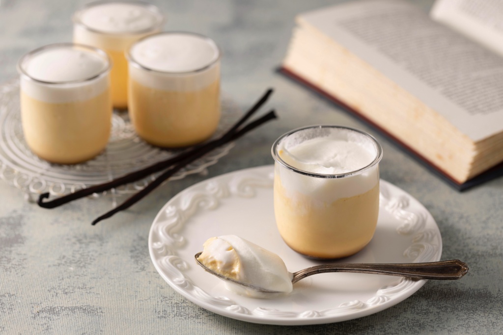 雲朵布丁以極少蛋液、法國鮮奶油、香草籽等製作,口感綿細嫩滑,上層放上打發法國鮮奶油,搭配底層充滿香草籽的焦糖,順口不膩,吃到香草與糖的結晶口感。法國經典甜點可麗露外皮酥脆,內餡軟Q,是完美無比的口感與風味對比。法式甜點基本款檸檬塔有別於傳統口感、風味,塔殼極薄卻奶香濃郁,檸檬餡酸甜清香,非常爽口。