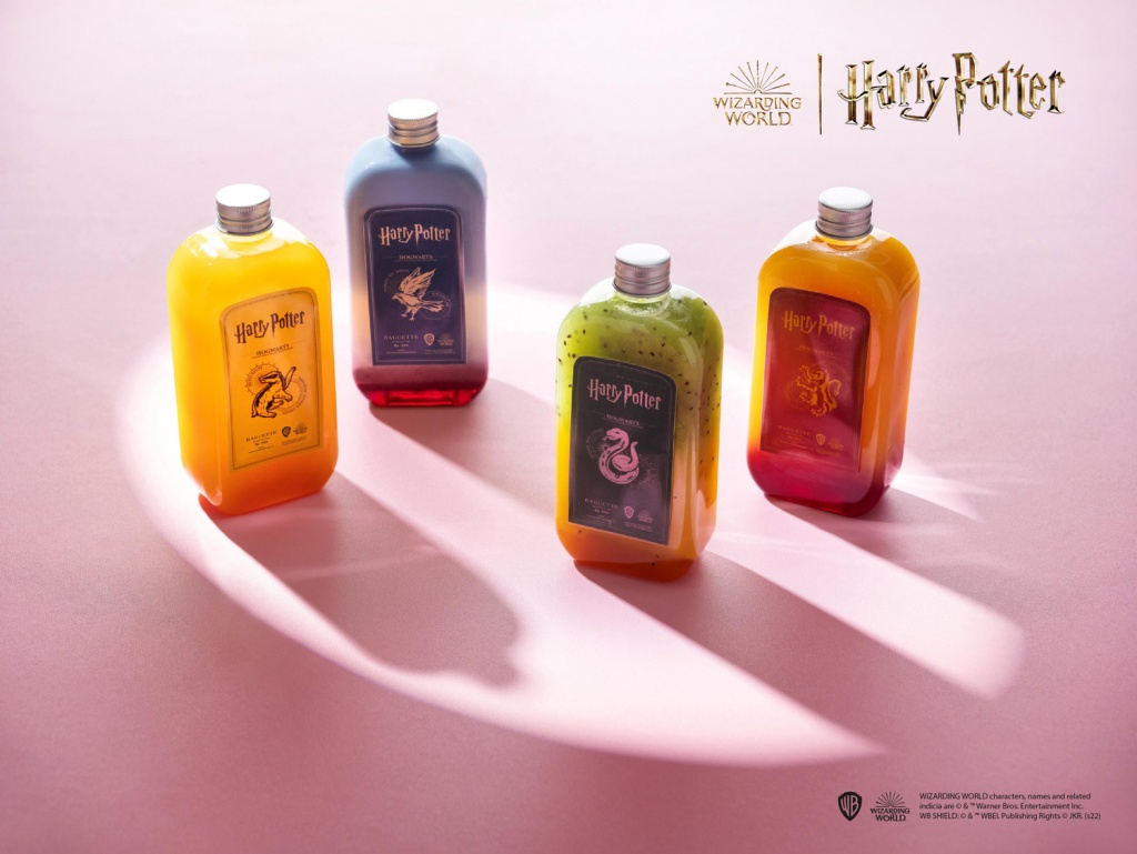 亦有收藏性十足的葛來分多-橙香蔓越莓、史萊哲林-奇異芒果柳橙汁、雷文克勞-奶香蝶豆花蔓越莓、赫夫帕夫-芒果柳橙4款果香魔藥特調。