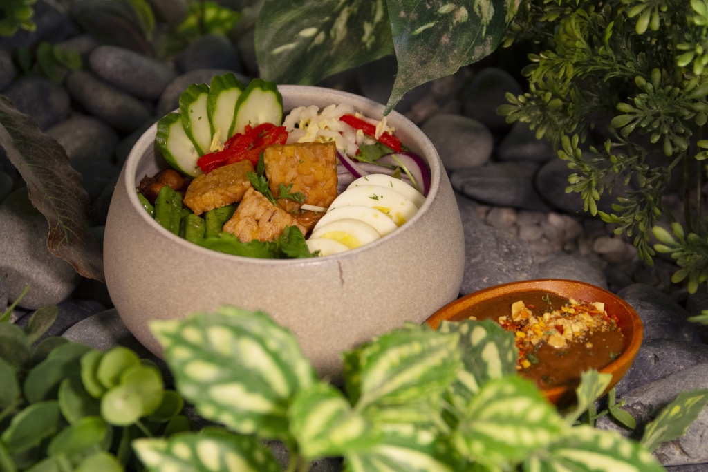新加坡辣炒沙爹天貝佛陀碗為Tim以OATSIDE巧克力燕麥植物奶自製特有濃郁巧克力香氣的沙爹醬,搭佐「超級食物」天貝的夢幻組合,外酥內軟的天貝充分保留食材原味,與寶貝生菜、白菜絲、藜麥飯拌在一起,豐富口感與濃醇的風味令人一口接一口!