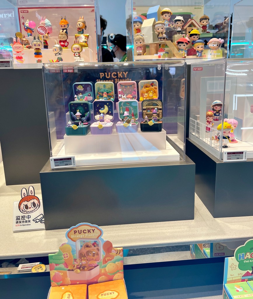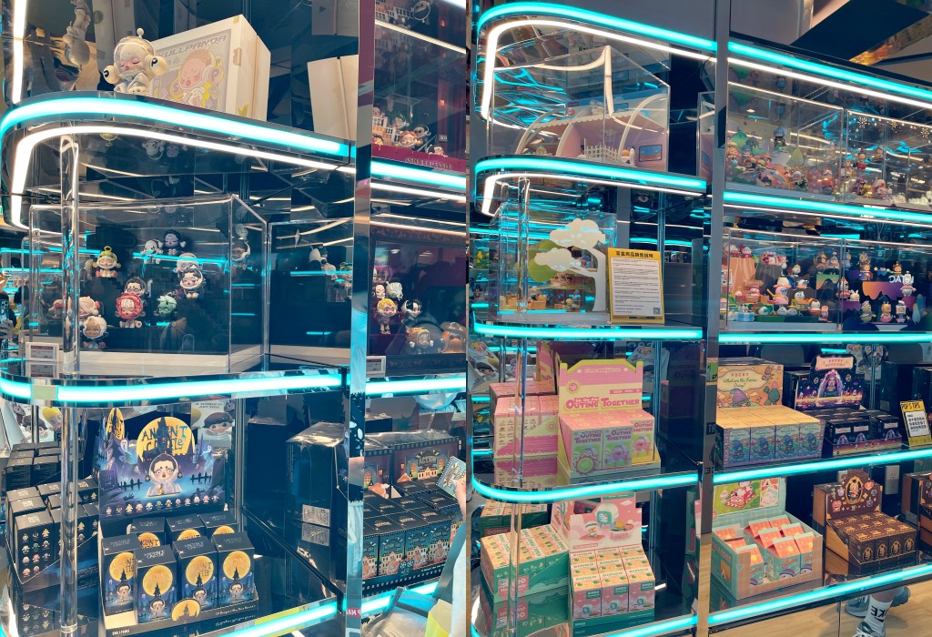 首間實體門市23坪空間,販售超過百種系列、上千款式潮玩,包括最火紅的Molly、古靈精怪LABUBU、暗黑奇幻SKULLPANDA、可愛小男孩DIMOO及充滿夢幻浪漫氣息PUCKY,五大超人氣系列在陳列架上一字排開,超吸睛!還有70公分高1000%Mega Space Molly,帶來強烈的視覺衝擊。