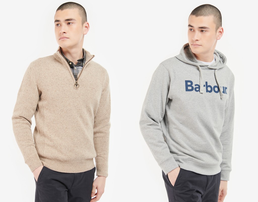 個性十足的半拉鍊立領毛衣,採用混色紗線打造獨特的紋理。搭配Barbour標誌性大拉鍊,在領口、袖口及下擺以羅紋裝飾,簡約中蘊含獨特質感。T-Shirt及帽T皆採用100%純棉製成,保暖且舒適合身,以對比鮮明的LOGO彰顯品牌優勢,嶄露輕奢時尚。