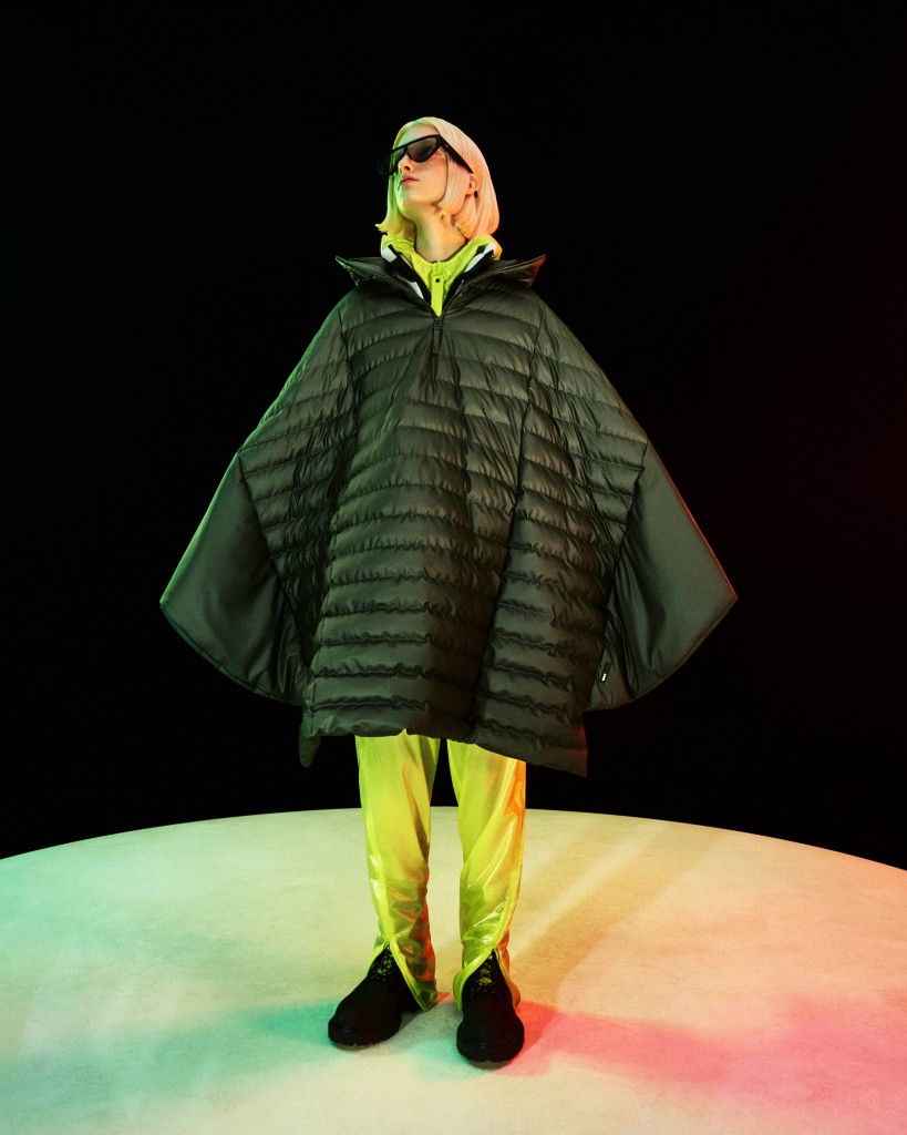 採用RAINS標誌性尼龍面料結合全面升級Thermore®保溫棉,創造出高性能防水外套,挑戰保暖機能單品的各種可能,從中空短版背心、斗篷到誇張超長版大衣,顛覆羽絨鋪棉單品的平淡想像,變幻出擁有自我個性的前衛風格。