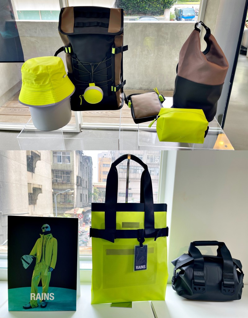 秋冬包款同樣訴求高規格防水絕緣材質,呈現更加多元與尺寸應用的實用包款。捲蓋式後背包、MSN雙扣環學院後背包、經典長型後背包3大RAINS明星包款皆增添秋冬新色選擇,