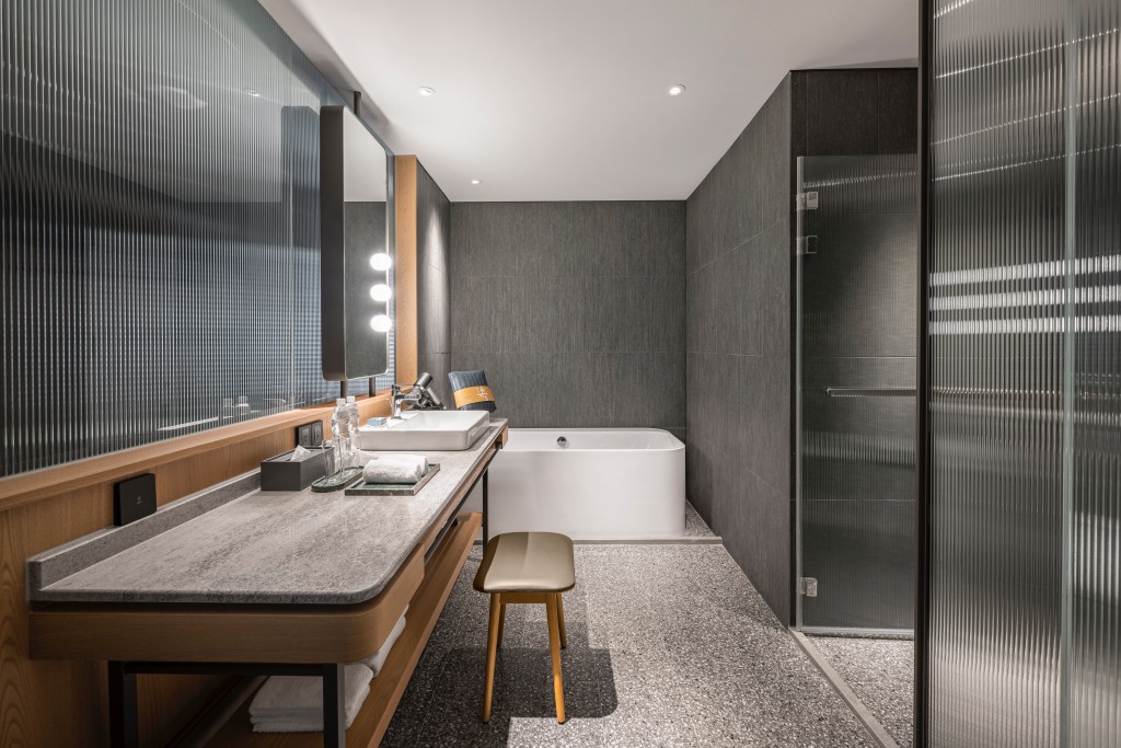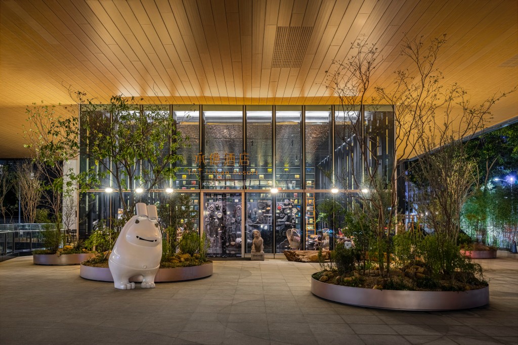 劉培森建築師規劃的承億酒店,主打高端餐飲融合旅宿為旅客帶來完整度假體驗。酒店建築體透過空橋連通高雄市立圖書館總館,豐富的藝術收藏與裝置藝術,不同閱讀觀點的圖書陳列,還有系列策展與體驗活動,以獨特的姿態成為亞洲新灣區的文化客廳。
