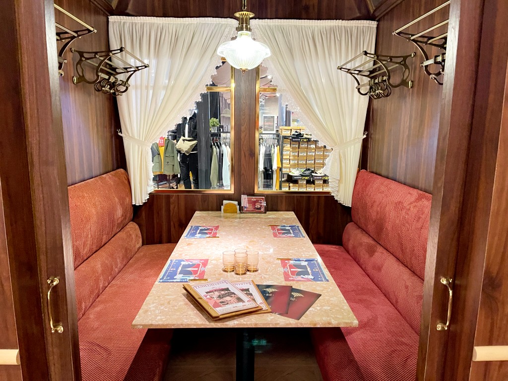 整體設計靈感結合品牌經典火車意象與日本大正時期風格,從走進店內的迎賓吧檯,一入眼簾即是以火車站票亭設計為靈感,彷彿跟隨著輪輪1976一起踏上摩登復古美食之旅。