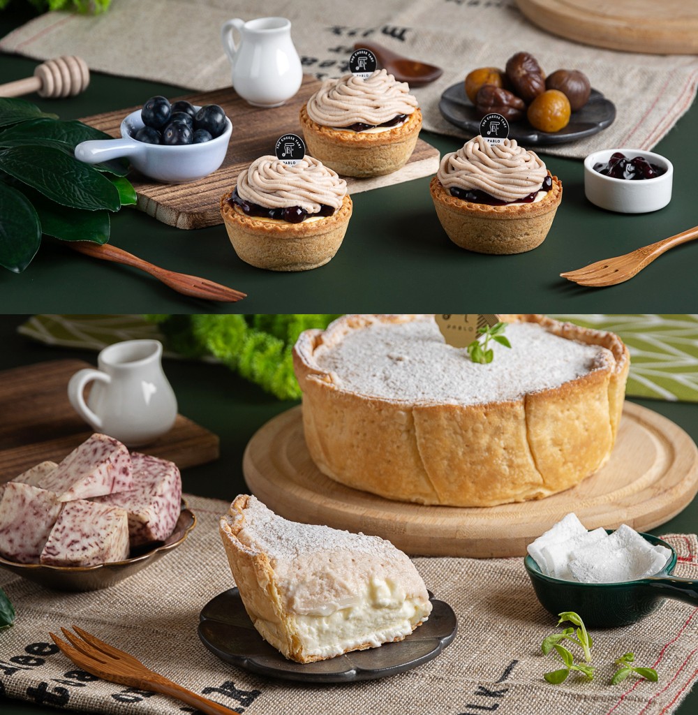 秋季限定!PABLO首度在台販售起司風味布丁系列新品、2款秋季當令最佳賞味食材栗子及芋頭入餡的季節限定新品,栗子藍莓迷你起司塔及芋頭麻糬鮮奶酪起司塔也同步登場。