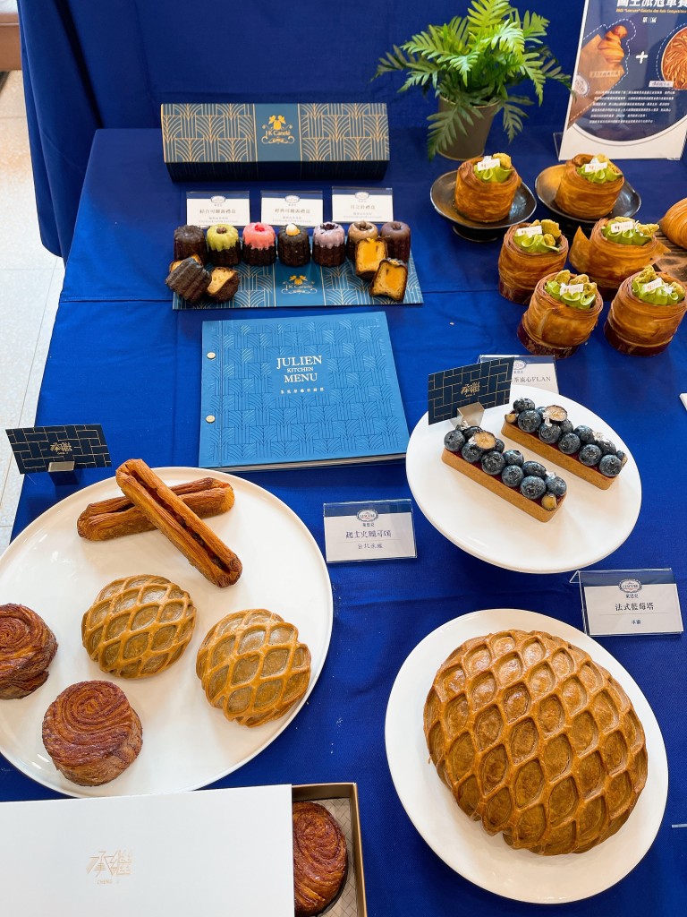 藍莓千層酥使用無酵母麵粉桿壓成奶油香氣十足的餅皮,融揉藍莓香堤餡與新鮮藍莓,創意搭配迷你泡芙造型製成深獲好評的法國傳統甜點。