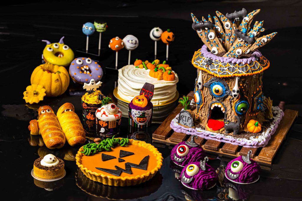 最受小朋友喜愛的「怪物棒棒糖蛋糕」,精心烘焙的巧克力布朗尼中揉入核桃及奶油起司,再以手工捏塑成南瓜怪、科學怪人、木乃伊等造型,精巧奇趣的設計讓人愛不釋口。搞怪造型的「南瓜樂園杯子蛋糕組」以巧克力馬芬、香草馬芬搭配紫地瓜餡、南瓜餡及香緹的經典組合,一口盡享秋日的滋味。