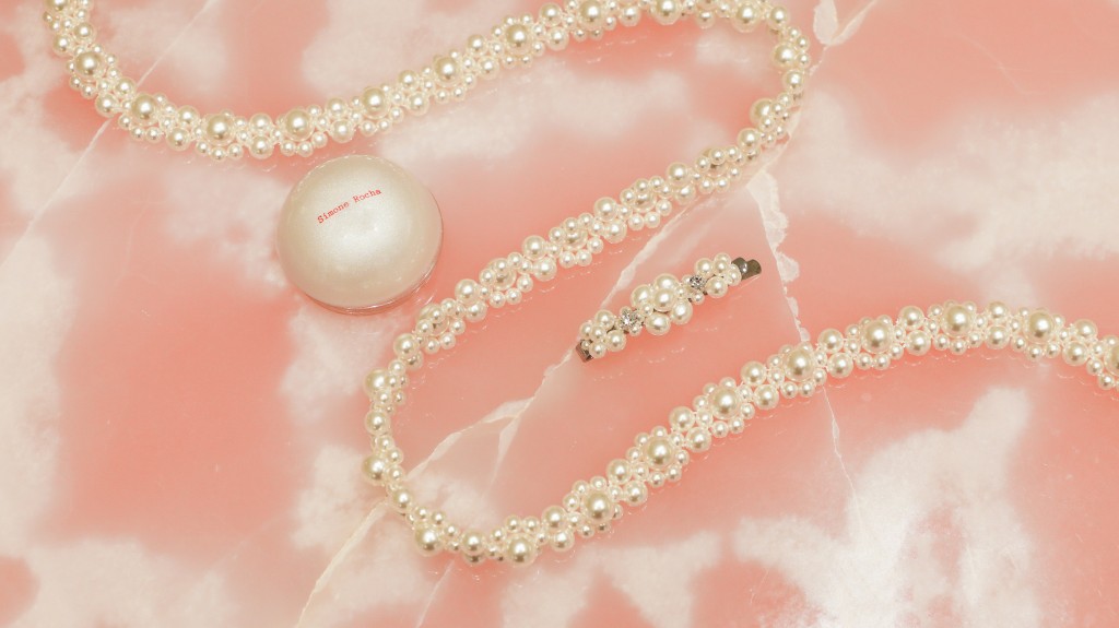 慶祝台北展店,設計師Rocha端出珍珠髮夾台灣獨家款,Rocha迷戀的珍珠亦攀上眼鏡鍊與手機支架的裝飾細節,僅在Simone Rocha台灣店獨家呈獻。珍珠手機支架為非賣品,僅限台北新店開幕期間限量贈與消費顧客。