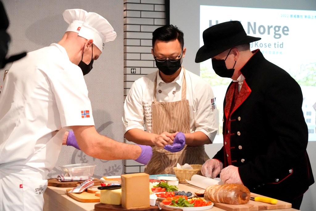 「配方除了原需添加的酵母、水等材料,僅多增加橄欖油讓麵包更形柔軟,並加入起司丁或整粒蜜漬紅豆增加口感豐富性,烤焙也提高爐溫縮短時間,出爐冷卻後表皮薄且軟,口感比較容易咬斷。」負責挪威麵包設計的吳寶春麥方店行政總主廚謝忠祐分享製作經驗。