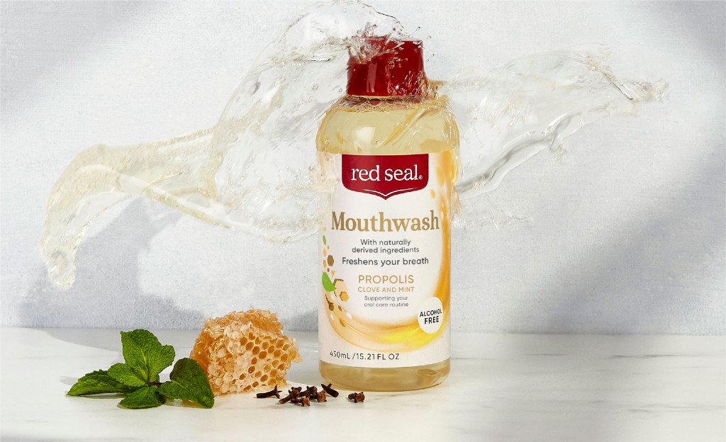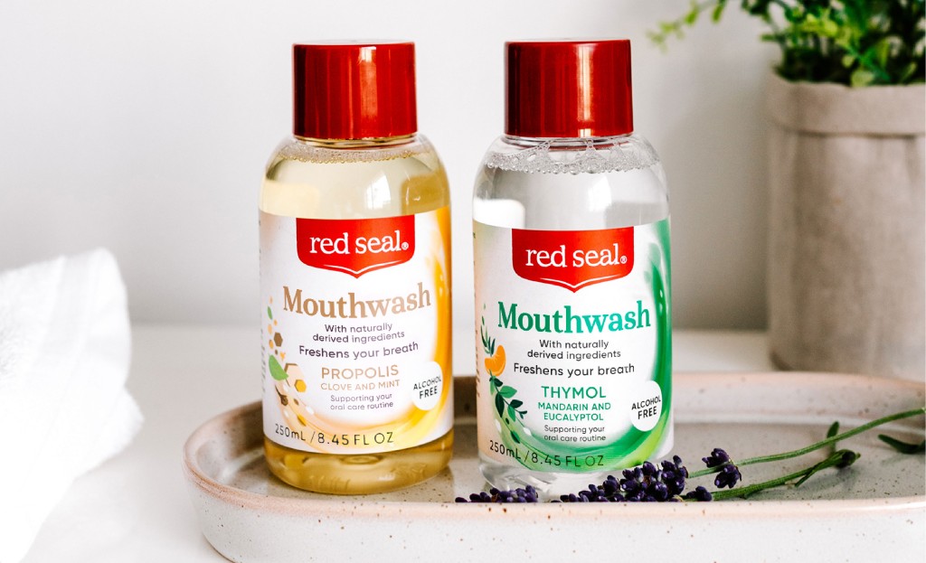 紐西蘭百年天然品牌red seal紅印推出全新產品,紐西蘭天然「蜂膠漱口水」、「百里香漱口水」,零酒精有效抗菌99%,儼然成為天然漱口水的天花板。
