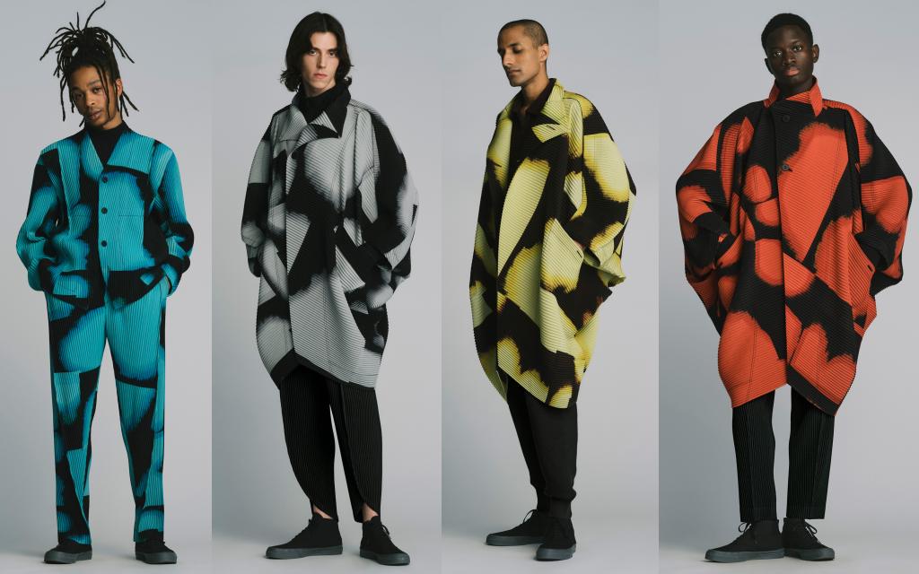 HOMME PLISSÉ ISSEY MIYAKE本季主題「A Work Of Arc畫弧作衣」以帳篷結構為設計靈感,引發了一系列對3D形式的新探索,在剪裁與印花中使用大量的“弧”, 大幅度地增加斗篷版型的設計。