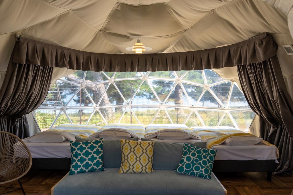 豪華露營(GLAMPING)不僅風靡台灣,也是日本近年相當高人氣的戶外活動,琵琶湖畔新開幕的豪華露營地「AFUMI KITAKOMATSU」,打造奢華帳篷及Villa別墅,舒適的帳篷內有獨立衛浴及一應俱全的電器設備。園區也提供一泊二食方案及晚間10點前飲料無限暢飲服務,與三五好友相約,至鄰近琵琶湖沙灘上野餐,相當愜意。