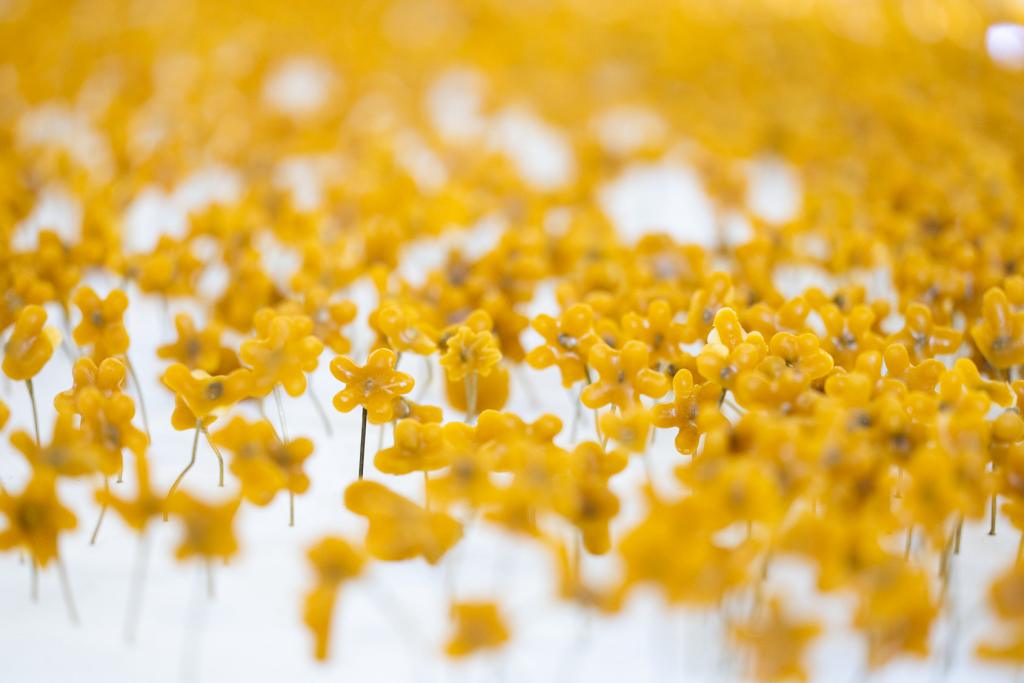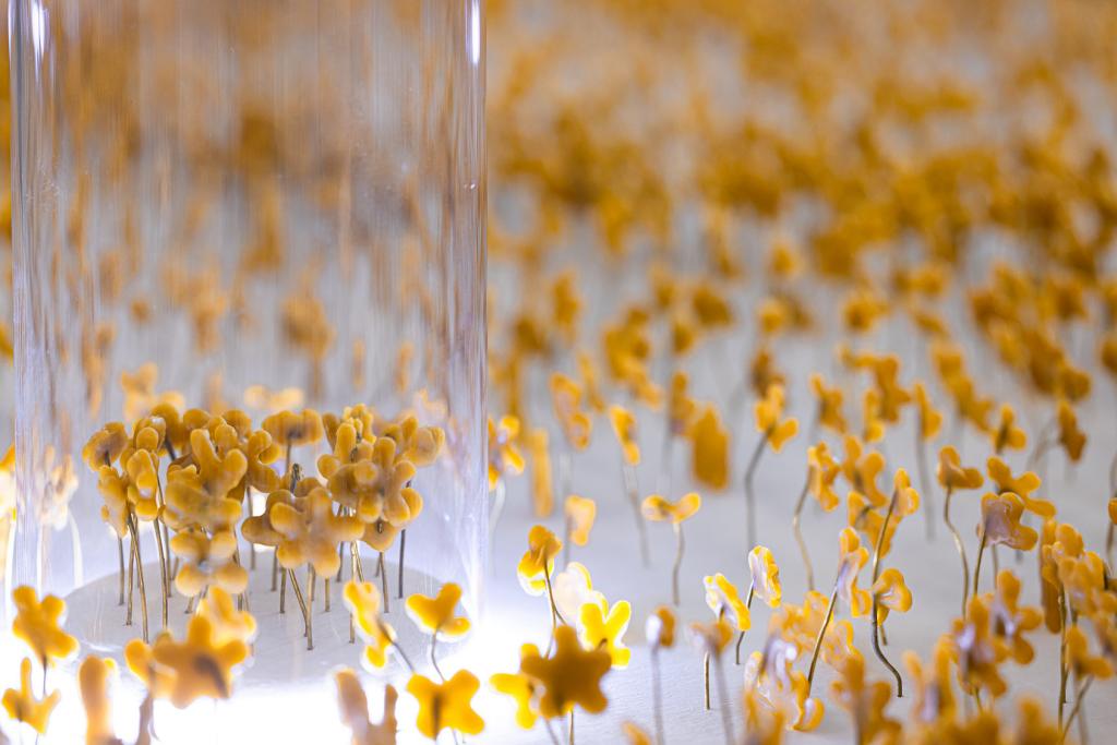 天然精油氣味分子混沌、多元、多變、不穩定、感性;人造氣味單體,特色為控制、規律、理性、單一、固定。在展台前先看見趣味而有機生長的花園、及矩陣羅列複製真實的花朵。