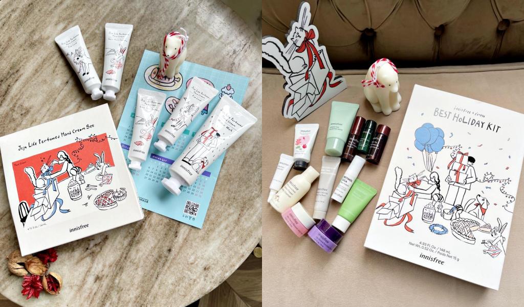 innisfree今年共推出5款耶誕組合,及2款只送不賣的滿額贈,包括明星商品綠茶籽保濕精華、濟州紅茶極效修護安瓶、今年新推出的A醇淨膚超修護安瓶,還有首次推出軟管包裝的大容量綠茶籽保濕霜限定版,及作為耶誕禮物交換首選的濟州香氛護手霜。