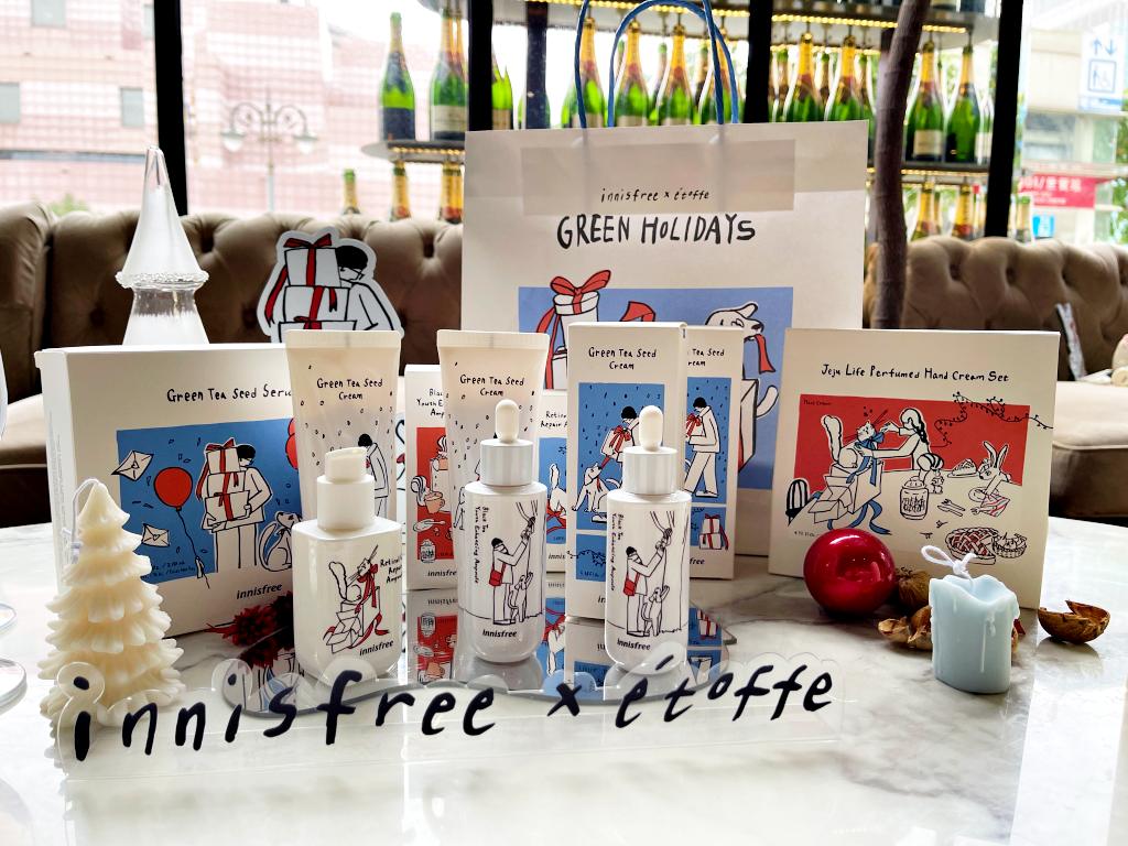 韓國自然主義美妝保養品牌innisfree一年一度令人期待的綠色聖誕暖心到來!今年聖誕首次與韓國知名插畫家étoffe合作,étoffe透過簡單細膩的詩意色彩與筆觸,描繪出動物與人類在日常生活中可以分享喜悅、相互陪伴的感覺。