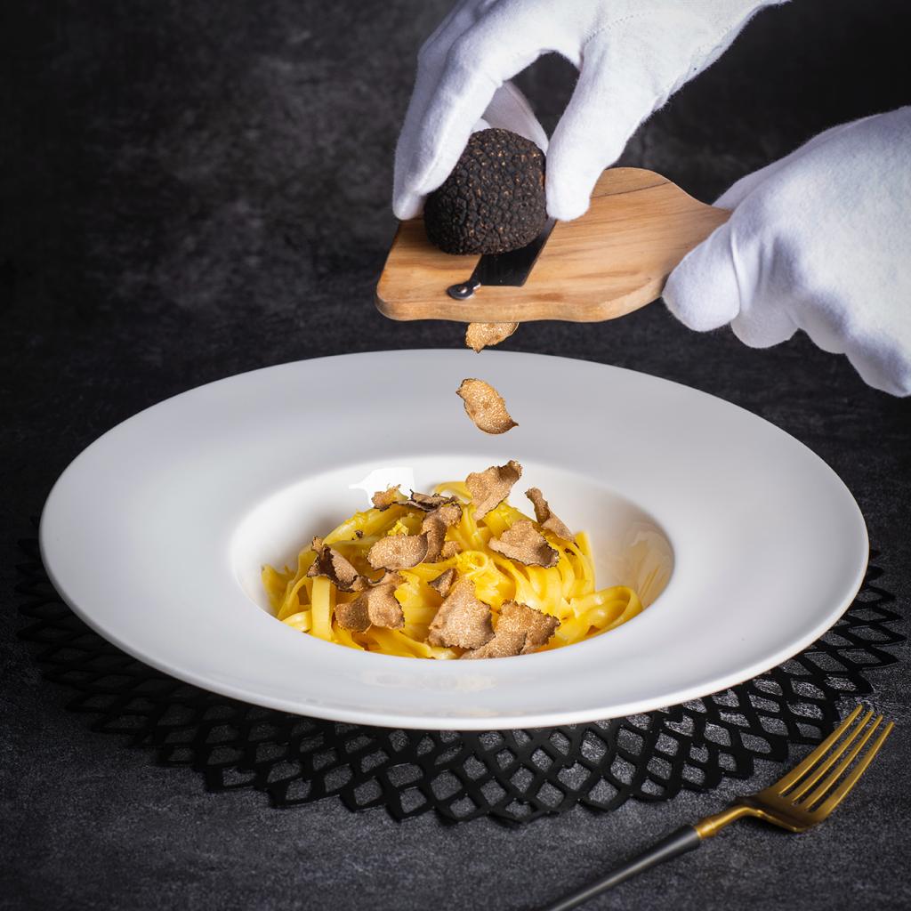 在越來越有深秋氛圍的時節,台北遠東香格里拉馬可波羅義大利餐廳推出期間限定「奢華黑松露晚宴」,當季黑松露香氣飽滿,入口時充滿麝香及榛果的風味,為每道佳餚的增添美味層次, 以義式廚房中的鑽石打造奢華黑松露饗宴。