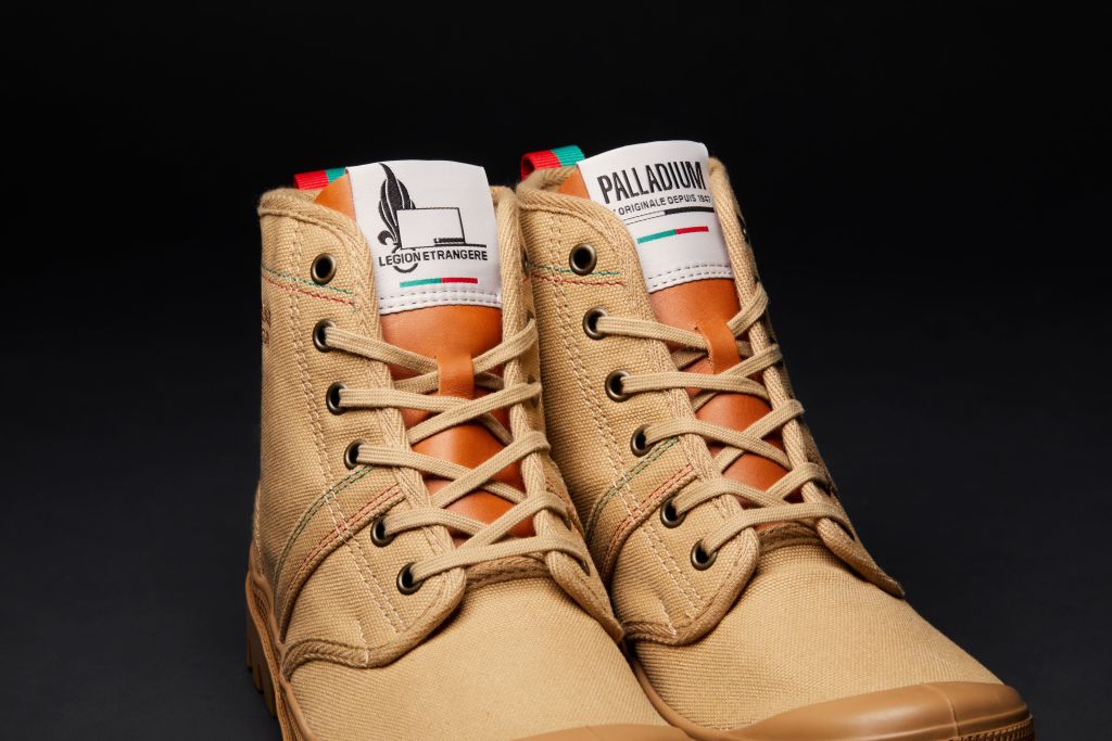 1947年法國軍靴品牌PALLADIUM推出第一雙由飛機輪胎原料的帆布與輪胎橡膠製作的PALLABROUSSE法式傳奇軍靴,2022年特別與法國外籍兵團(Légion Étrangère)合作打造75周年限定法國外籍兵團聯名正統軍靴PALLABROUSSE LEGACY,完美融合當時PALLADIUM為法國外籍兵團製作第一雙軍靴與兵團標誌元素,共同慶祝品牌75周年及象徵彼此長久合作關係。