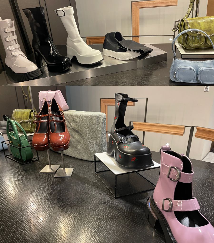 2.虛擬銳舞:源自90年代銳舞文化的Y2K風潮持續延燒,與現今元宇宙虛擬熱潮接軌,流線厚底、金屬鍊條裝飾、亮色漆皮材質等具未來科技感的元素成為時髦代名詞,其中厚底靴更成為曾之喬遠赴巴黎時裝週的戰鞋,與戲劇化服裝搭配出時尚度爆表的前衛造型。