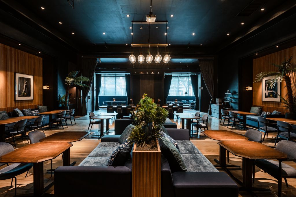 Westwood餐廳兩面開窗,運用格柵設計讓光線能隨著時段變化,以不同角度穿透進來;吧台垂墜燈飾會隨著夜晚來臨而調整光線,營造微醺放鬆的氛圍,可以全天候沉浸在充滿活力、熱情好客的環境中舒服的交流與用餐。