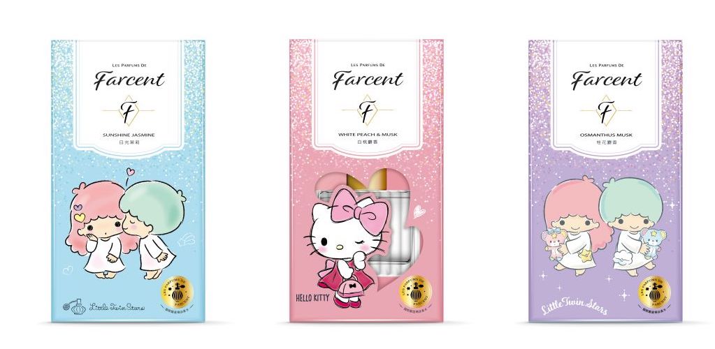 史上最萌香遇誕生!時尚香氛品牌Les Parfums de Farcent(Farcent香水系列)以最萌療癒系教主Hello Kitty、雙星仙子KikiLala為主角,為SANRIO三麗鷗迷與香氛控打造最有質感的時尚香氛生活,推出令人荷包失守的香水室內擴香、沐浴露,讓可愛的三麗鷗由裡到外療癒身心靈,陪伴優雅每一天。
