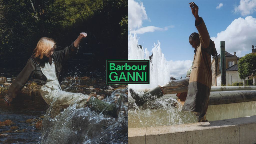 BARBOUR與GANNI首次合作,融合了GANNI標誌性酷美風格與BARBOUR永恒實用的設計,推出短版與長版油布外套、絎縫夾克、短裙與油布漁夫帽共5項單品,全部由經過認證的有機蠟棉與經過認證的再生聚酯纖維製成。