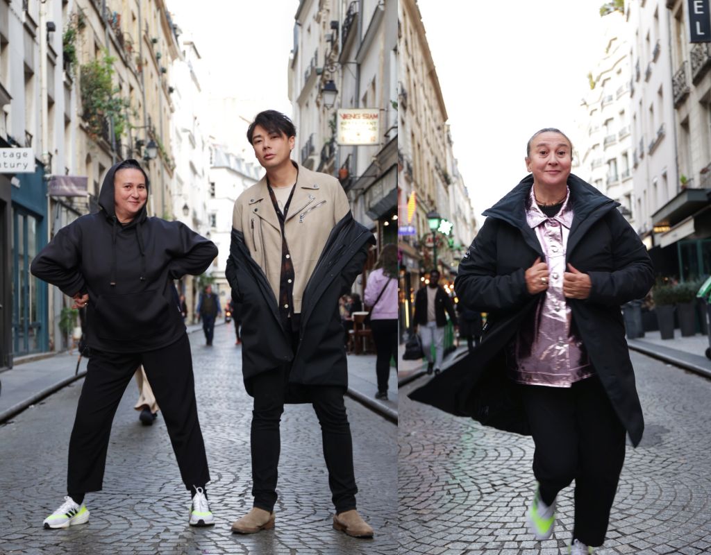 造型師Nathalie Croquet穿上T8K以奈米金屬科技製作的防水鋪棉外套,驚豔它的輕盈保暖,表示另一款連帽衛衣就是她私底下會選擇的單品。
