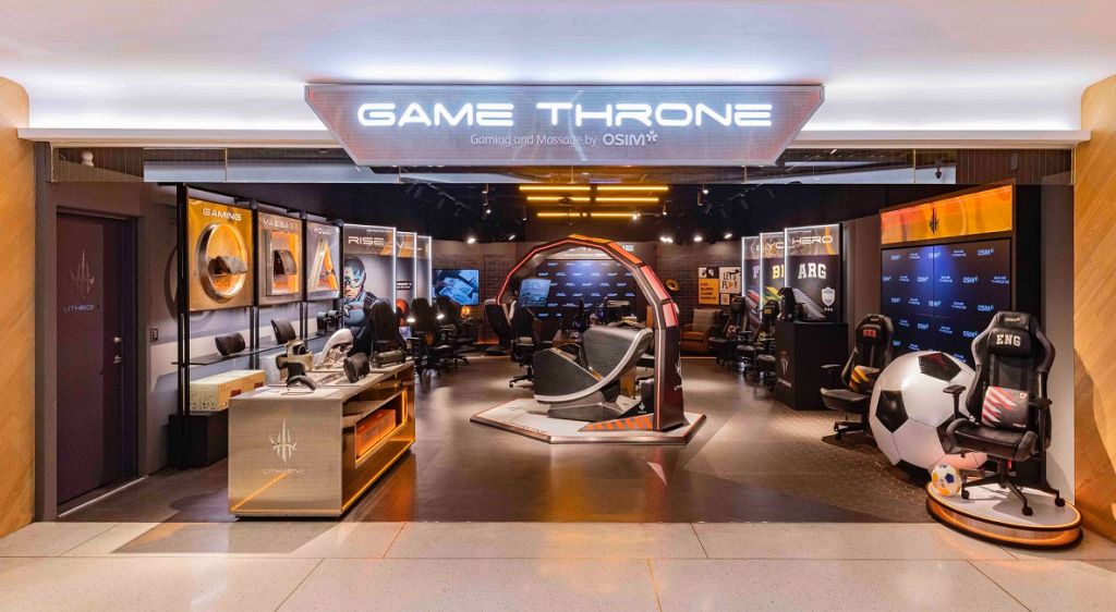 OSIM電競按摩概念館「GAME THRONE」,採用炫目視覺與燈光,俐落感線條設計,以嶄新店點樣貌亮相,讓消費者能更輕鬆接觸與體驗產品。店名概念出自電競天王uThrone,遊戲玩家們能在這裡找到屬於自己的最佳王座,讓身體享受最好的支撐與按摩感受,成最佳應援助您輕鬆迎戰關卡,在遊戲戰場上更Level up!