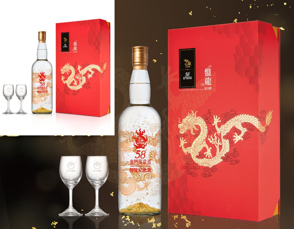 2012金龍年金酒曾推出限量3萬瓶「金門高粱酒-盤龍紀念酒」,口感獨特、層次豐富的澎派香氣,堪稱許多高粱迷心目中的經典傳奇。2022年金門酒廠絕版好酒復刻重磅再升級,推出精裝絕版限量「金門高粱酒盤龍金箔酒」,濃郁香醇增添溫順豐厚滋味,是建廠70周年系列壓軸商品,集金門酒廠70年製酒工藝之大成,歷經10年加金再現。