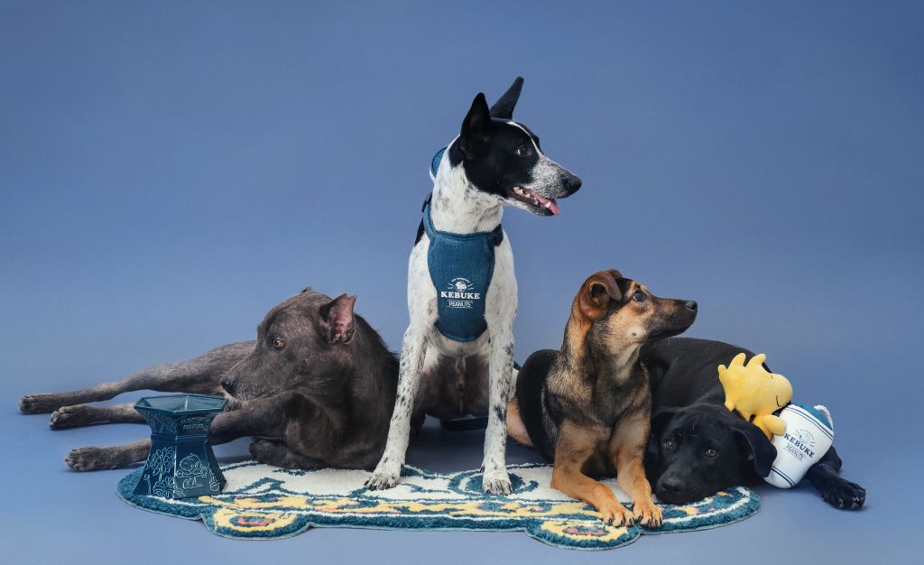 寵物話題系列—長植絨地墊、寵物陶瓷高腳碗、寵物胸背包牽繩組與寵物多功玩具。寵物長植絨地墊如夢翩翩之姿倚著獨特的中式滑板翱翔於壯麗山林星空中,結合西方普普風營造文化衝擊獨特美感。日食荷香寵物陶瓷高腳碗以中國古代六角瓷器花瓶樣式,結合經典可不可藍色寵物飛燕碗與浮雕圖紋,如同置身於花叢中大快朵頤。