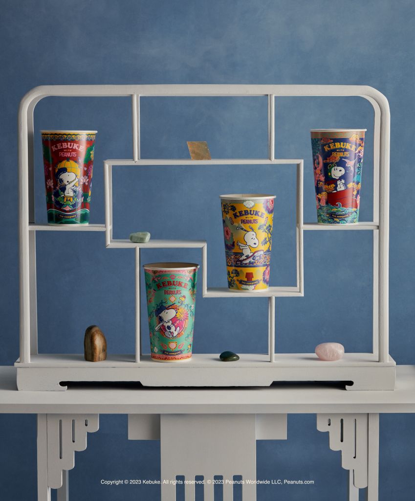 KEBUKE╳PEANUTS聯名商品以傳統文化琺瑯彩╳普普風格建構史奴比的夢想宇宙,畫工精緻的琺瑯彩工藝描繪奇幻豐富的想像世界,運用普普風格將繁美的琺瑯筆觸轉化為漫畫線條,展演新舊時代的藝術碰撞火花,將美學以貼近人心的日常觸及大眾。茶飲生活、寵物話題與風格珍藏3大系列周邊商品將接連三波上市。