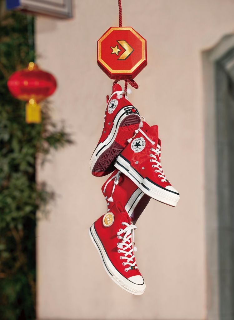 CHUCK 70 PLUS的不對稱設計結合加長鞋舌,改變了視覺慣性;以印刷和電繡技術將篆書兔紋勾勒於鞋身之上,營造張揚個性,昭顯新春瑞氣。