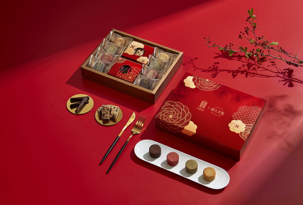 開元食品╳舊振南「巧緻果酥迎春禮盒」包裝結合甜蜜與喜氣意境,精選4款舊振南的創新小巧水果酥,嚴選在地鳳梨為基底,添加獨家乳酪配方製成的濃郁奶香外皮鳳梨酥;以芒果製作內餡,搭配伯爵茶茶葉揉入奶酥皮,有著清爽茶香與果香的伯爵芒果酥;內餡選擇草莓搭配桑葚,融合雙重酸甜莓果好滋味的草莓桑葚酥;用茂谷柑製成內餡,奶酥皮揉入精品級法芙娜可可,風味浪漫甜而不膩的可可茂谷酥。