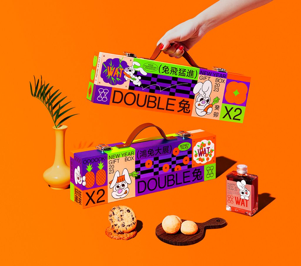 WAT也應景推出搶手新品「2023 WAT DOUBLE兔春節禮盒」,外盒設計充滿新春祝賀、雙倍可愛元素,以三款瓶裝雞尾酒,搭配甜香好滋味的詩特莉手工餅乾。有著可愛造型喜氣爆表的兔兔酒標「桂圓香烏龍雞尾酒」,是專為農曆兔年研發的新口味。