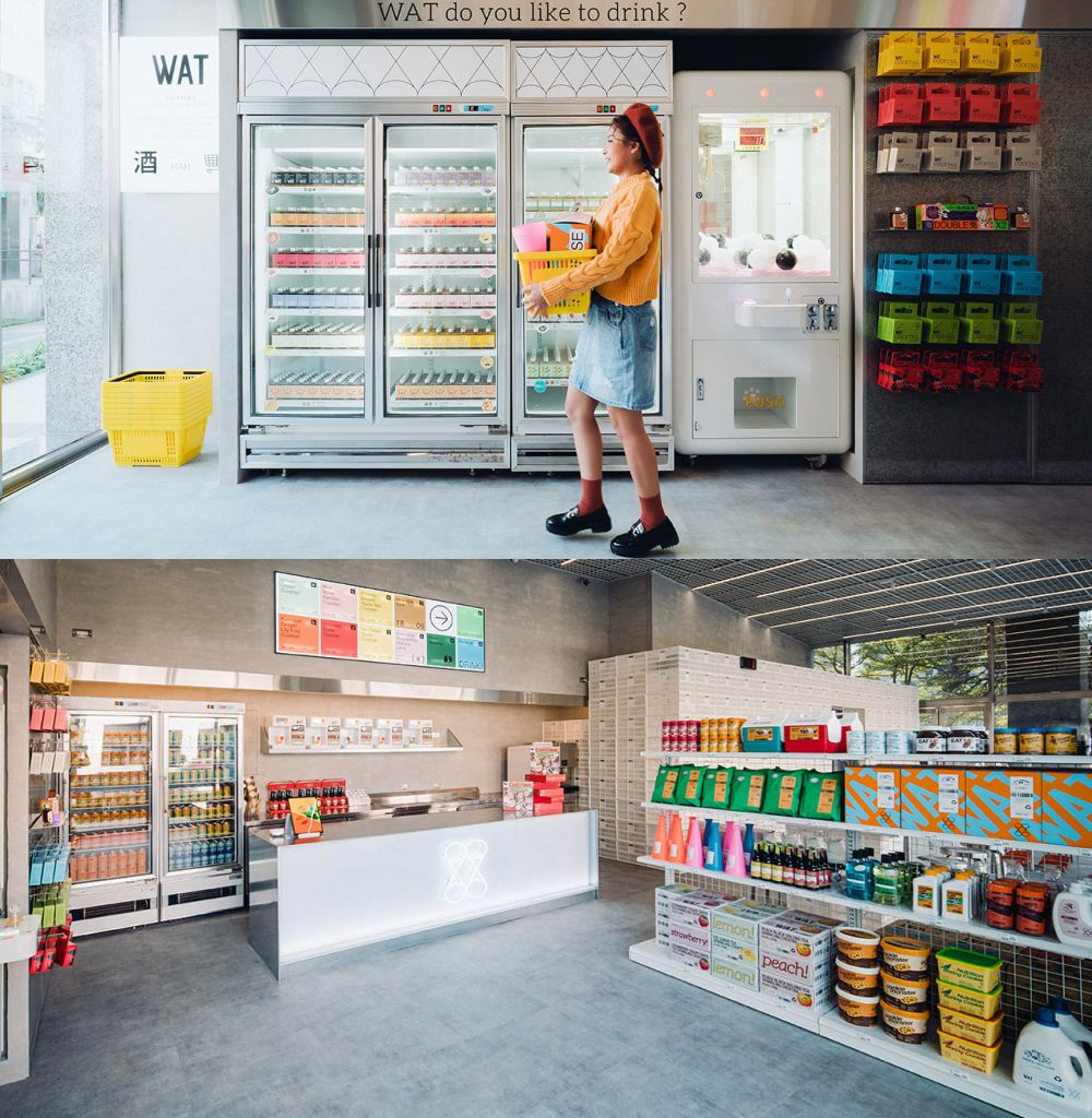 WAT信義旗艦便利店告別大家喜愛的WAT BAR,迎來信義SUPER與BAR雙邊結合的魔術大空間,新潮時尚的設計鎖定年輕族群。除了原有玻璃瓶裝雞尾酒與罐裝氣泡雞尾酒,新店也推出低酒精的都市綠洲、紅酒通寧、薑花金桔及煙燻可樂等FIZZ系列新口味,未來還會再推出更多新奇飲品。