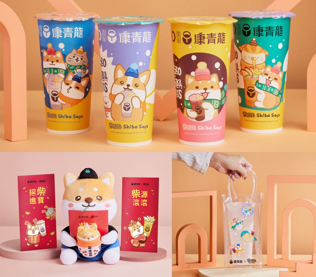 2023年第一檔最萌趣的手搖聯名來了,康青龍攜手柴犬界最火紅的巨星柴語錄主角們,打造歡樂幸褔的柴茶樂園。首波推出柴茶樂園店長公仔、柴茶樂園擺飾、招柴百寶袋與招柴紅包組共4款驚喜聯名商品,飲料杯身、封膜也都通通變成廢柴與阿吉各種喝飲料的獨家可愛造型。