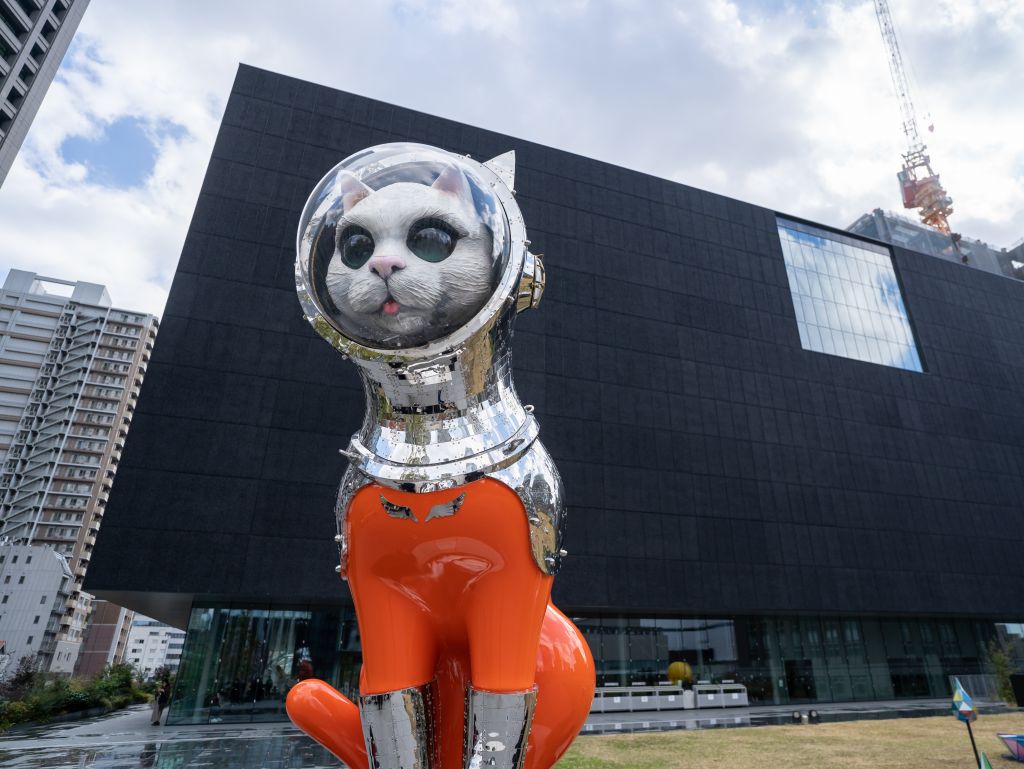 大阪最新必遊景點大阪中之島美術館,2022年2月開幕,歷經約40年籌備,宛如黑色盒子的外觀特別搶眼醒目。草坪廣場入口由當代藝術家矢延憲司創作「SHIP’S CAT(Muse)」雕塑作品,靈感來自大航海時代貓隨船員一同登船,作為守護地域及招福的象徵。館內搜羅日本國內外19世紀後半至當代美術藏品,定期舉辦各種主題展覽,是大阪最新的文青藝術據點。