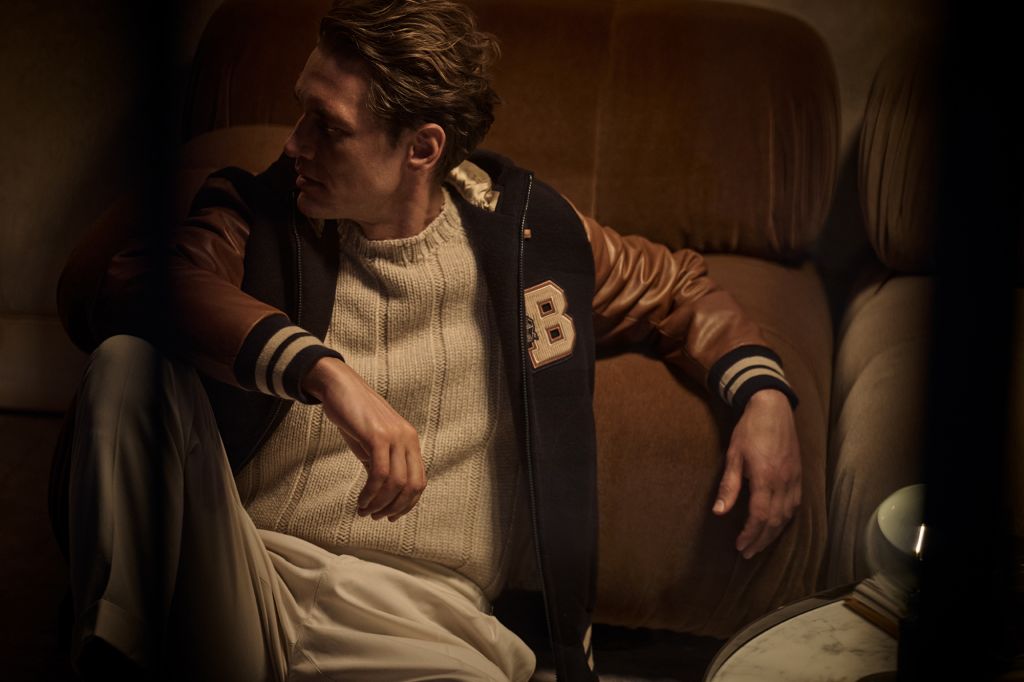 本季推出更多特別單品,以獨特品質材料與工藝,詮釋Brunello Cucinelli特有風格:奢華海狸呢或鬆柔羊絨混駱駝毛面料,引入飛行員夾克與空軍服短夾克,輔以極致柔軟的剪羊毛襯裡,改版經典。