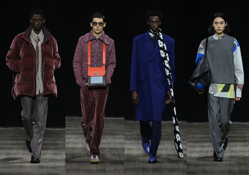 FW季男裝以黑、灰、白為主調,融入充滿活力的醒目鈷藍穿插其中,並與象徵秋季暖色調的酒紅、棕色與紫紅和諧地置於一體。