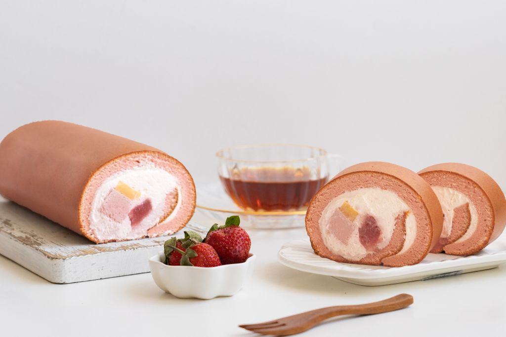 每天限量生產300條的「鮮採草莓生乳捲」,甜度與風味絕佳的大湖香水草莓,色澤紅潤多汁,風味飽滿,散發濃郁香氣,將新鮮草莓包裹在泡芙蛋糕裡的奢華,細膩柔順的北海道奶霜與天然香草籽加持的卡士達形成絕佳搭配!