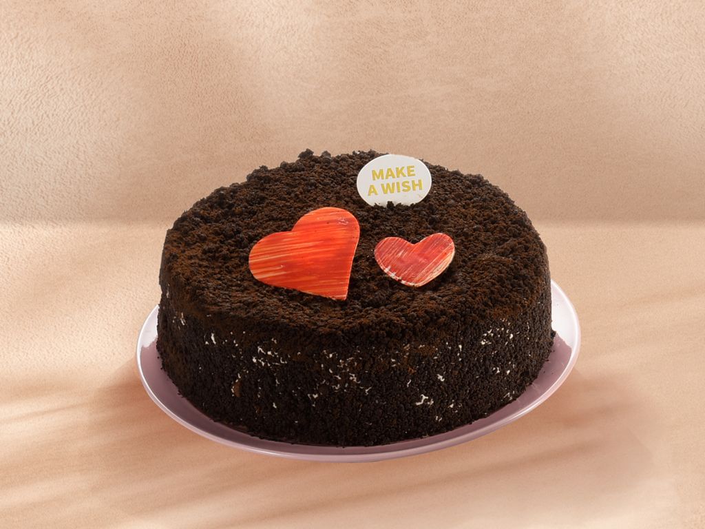 頂級生巧克力蛋糕搭配表面塗抹混合白蘭地與波美糖水而成的酒糖,增添淡淡酒香;內層夾入比利時進口巧克力、鮮奶油、香草、等紮實內餡製成巧克力甘納許,入口軟滑香醇不甜膩。