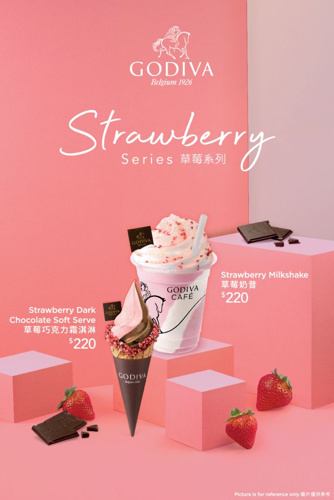 GODIVA草莓系列夢幻甜品限量回歸!「草莓巧克力霜淇淋/草莓霜淇淋」以GODIVA白巧克力為基底製成,粉紅色外表粉嫩動人,嚐得到草莓的酸甜滋味,結合GODIVA黑巧克力霜淇淋更是香醇濃郁!甜筒邊緣沾上乾燥草莓顆粒、灑上帶有莓果酸香的草莓粉,一次嚐到多重草莓風味,撲鼻而來的草莓香氣,全面觸動嗅覺與味覺的感官享受。