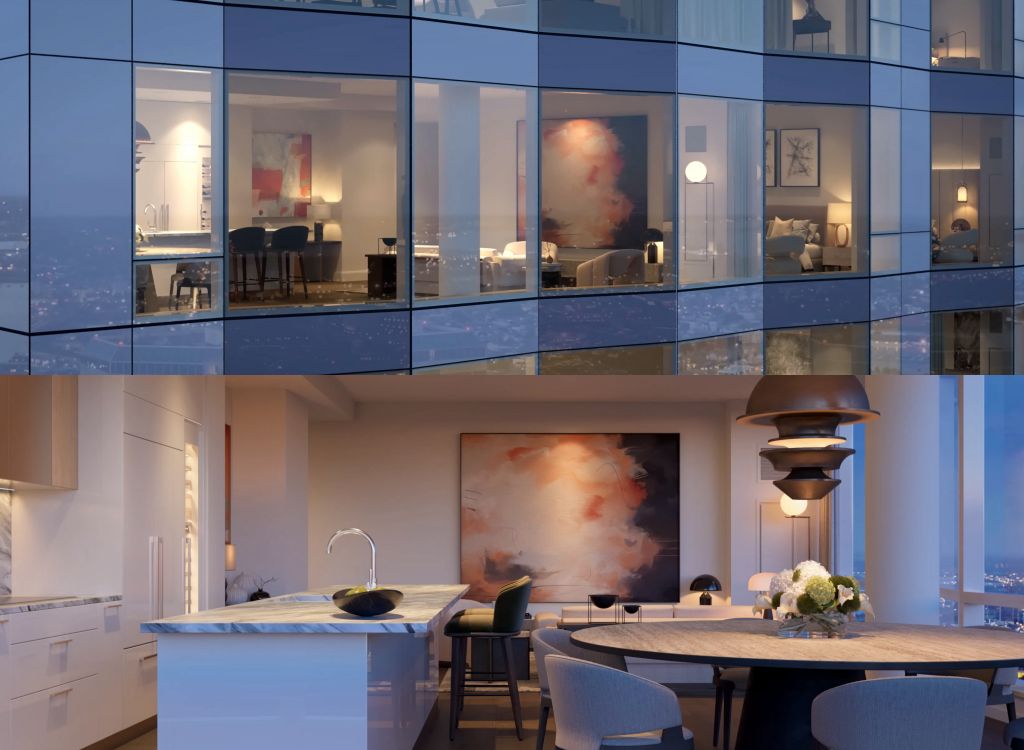 波士頓溫斯生態大廈.千禧名邸配備專業級廚房、知名設計師CHRISTOPHER PEACOCK打造的客製櫥櫃,及有利於高效能生活方式的各種服務、設施與體驗,住宅坐落於這座住商綜合大廈812,000平方英尺(75,437平方米/約22820坪)辦公空間之上,位於35層、60~62層共計15套氣派華貴高樓套房。專案於2023年4月竣工。