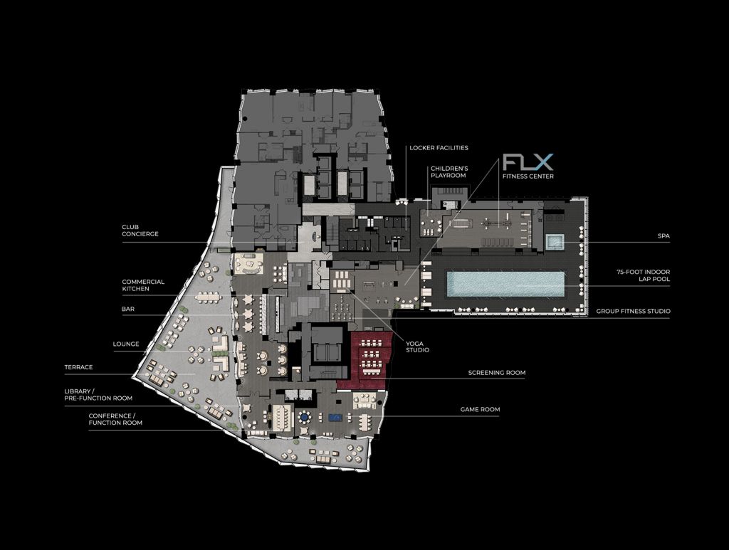 住宅內有靈活的起居辦公環境,配備環保電器、材料與有益健康與社交的設施,包括康體俱樂部、寵物俱樂部、提供身心健康與營養顧問服務的先進健身中心,及包含多個樓面的社區聚會空間,提供餐飲服務與文化體驗。