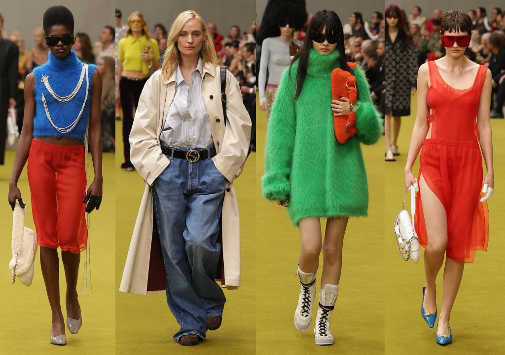 GUCCI 2023秋冬女裝系列以令人回味而又展現當代美學的方式,將品牌歷史創意文化串聯起來。伸展台上全體演員透過演繹,呈現跨越了1990~2010年代Y2K風潮,再到今日的設計樣貌,體現這季時裝秀的故事背景。