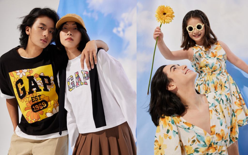 *優雅文藝繆斯女神風:GAP 2023花系列服飾以黃、藍、粉等鮮豔色彩為基底,將花朵元素巧妙融入GAP標誌性LOGO增添藝術氛圍;部分女裝及GAP Kids款式加入大面積滿版印花設計,絢爛花朵錯落有序地灑落在服飾中,展演大膽鮮明風格。