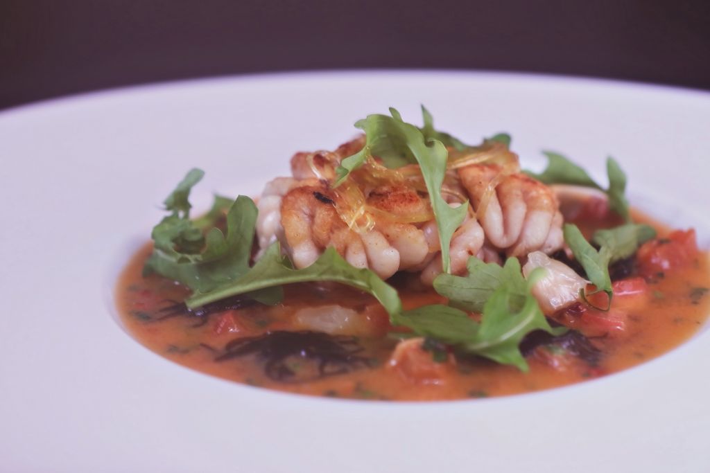 主廚將日本鱈魚白子香煎,入口時先感受到白子表皮柔嫩口感,接著品味白子內部鮮甜豐腴的細膩滋味,搭配以西班牙風乾臘腸、蛤蠣、雞湯、奶油、油封蒜製成醬汁,整體味道非常具西班牙風情,濃郁又不失雅致。