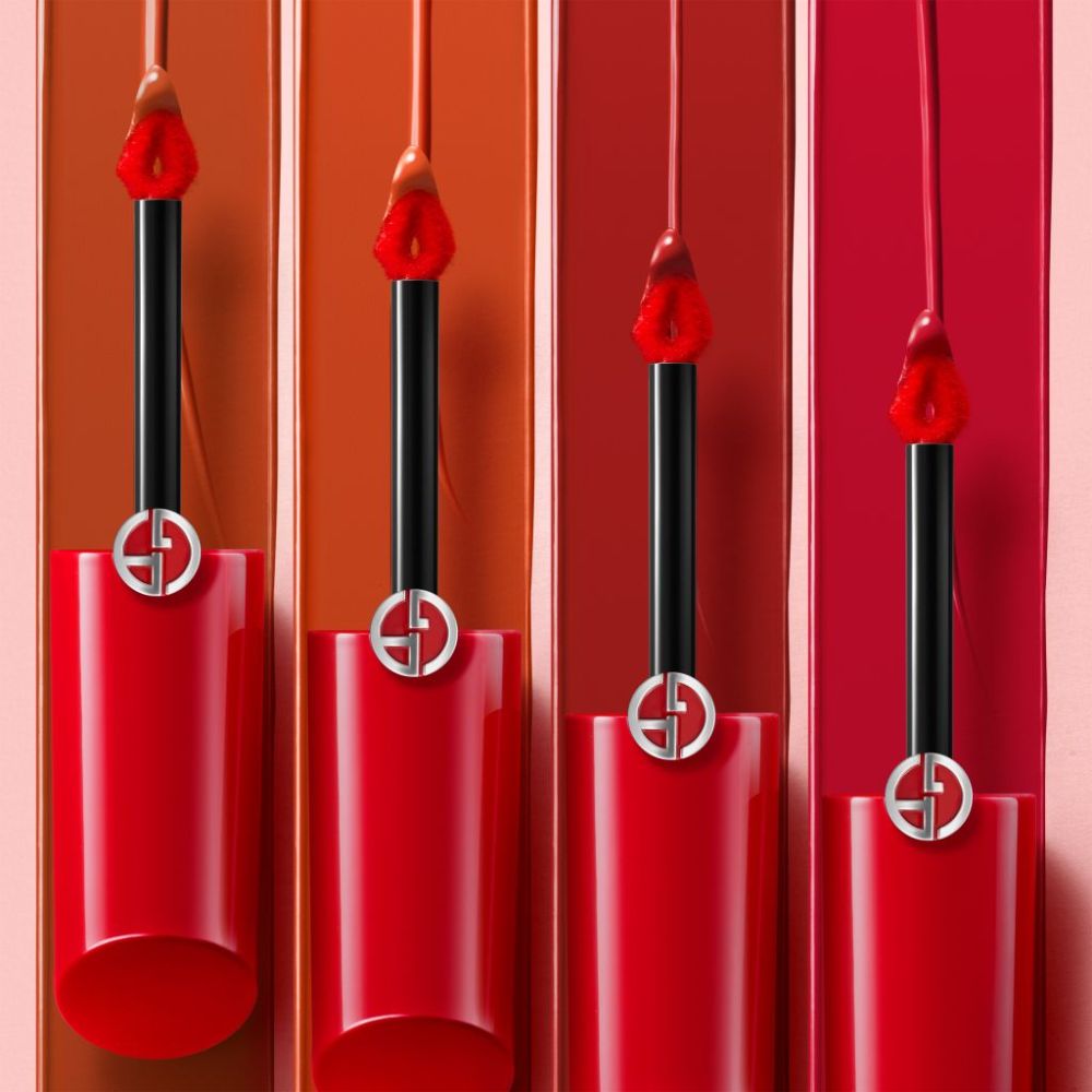 奢華絲緞訂製水唇釉包裝別出心裁,將ARMANI經典唇膏造型植入輕透霧感水唇釉管身內包裝,固態唇膏與液態唇彩巧妙結合的完美工藝,象徵新世代跳脫框架的活力。