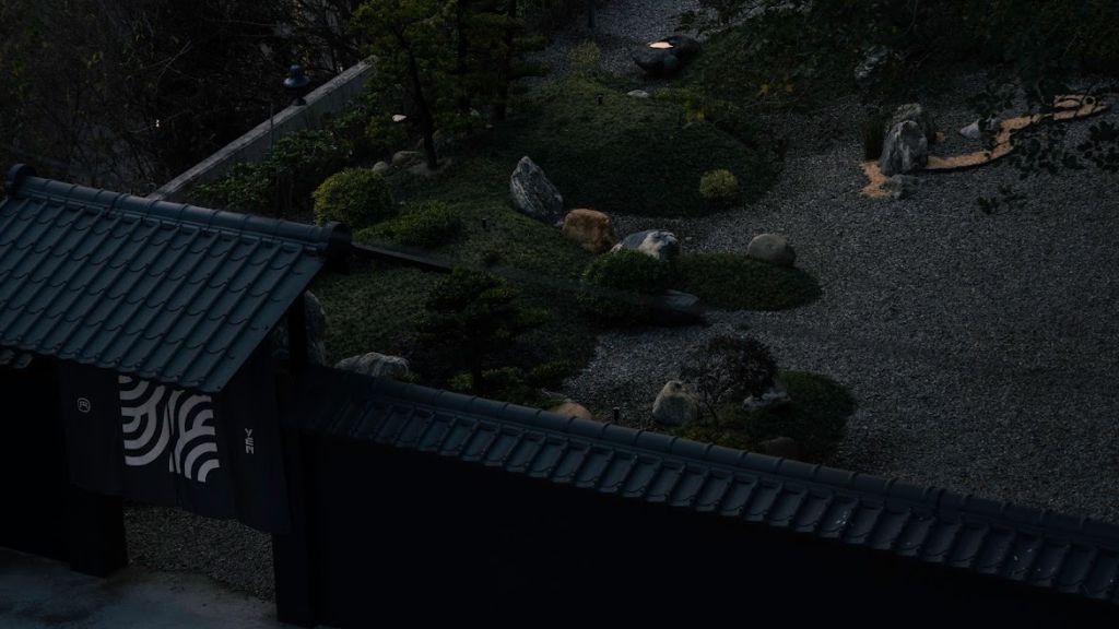 「枯山円敷YEN KARESAN」在離都市15分鐘的近郊大自然環抱下, 以傳統日式建築與枯山水庭園為本,秉持日式經典美學,各處細節延續YEN円低調、沈穩直接的現代風格巧思,將日式瓦房及圍牆以風格強烈的深鐵灰石材建造,體現傳統建築結合現代自然質材的平衡美,展現自然無常的日式侘寂之美。