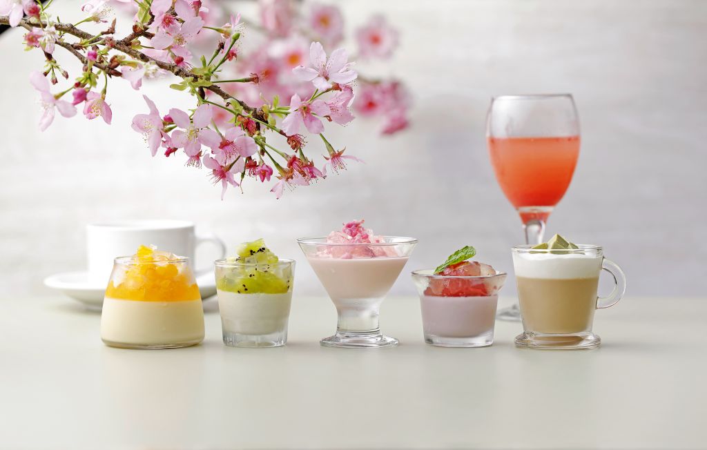 春季限定甜點花見奶酪,用櫻花草莓、葡萄、香橙、奇異果4款水果凍,覆在絲滑順口的香醇奶酪上,就像多彩活潑滿園春色,層層排列在餐檯上,有種目不暇給的快感,入口時,水果的優雅甜味配著濃濃奶香,帶來輕柔春日風味,絕對是清新無負擔的甜蜜享受。